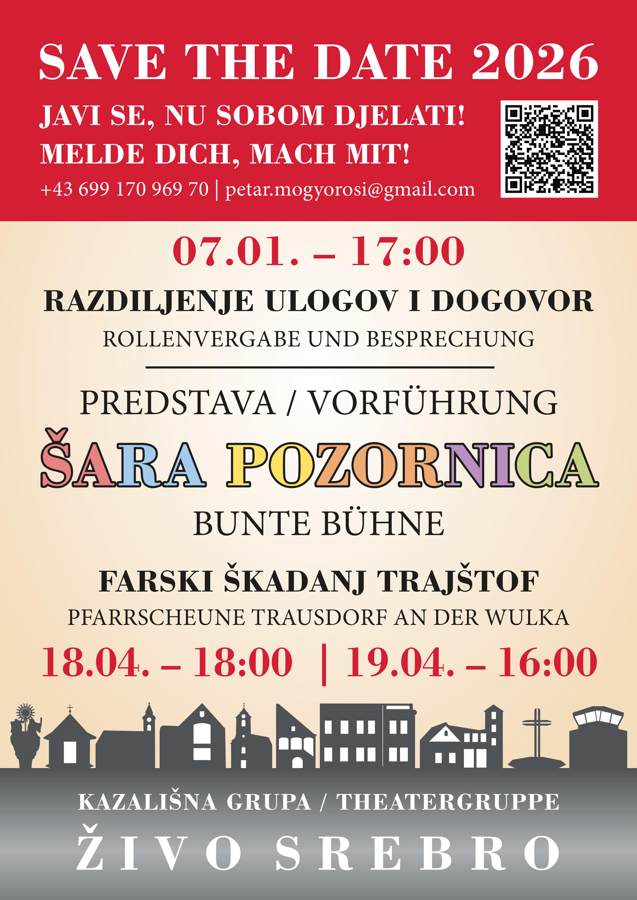 | Trajštof, Trausdorf Tel+4369917096970 | 18.4.2026, 18:00 Uhr "Bunte Bühne" | 19.4.2026, 16:00 Uhr | ||||